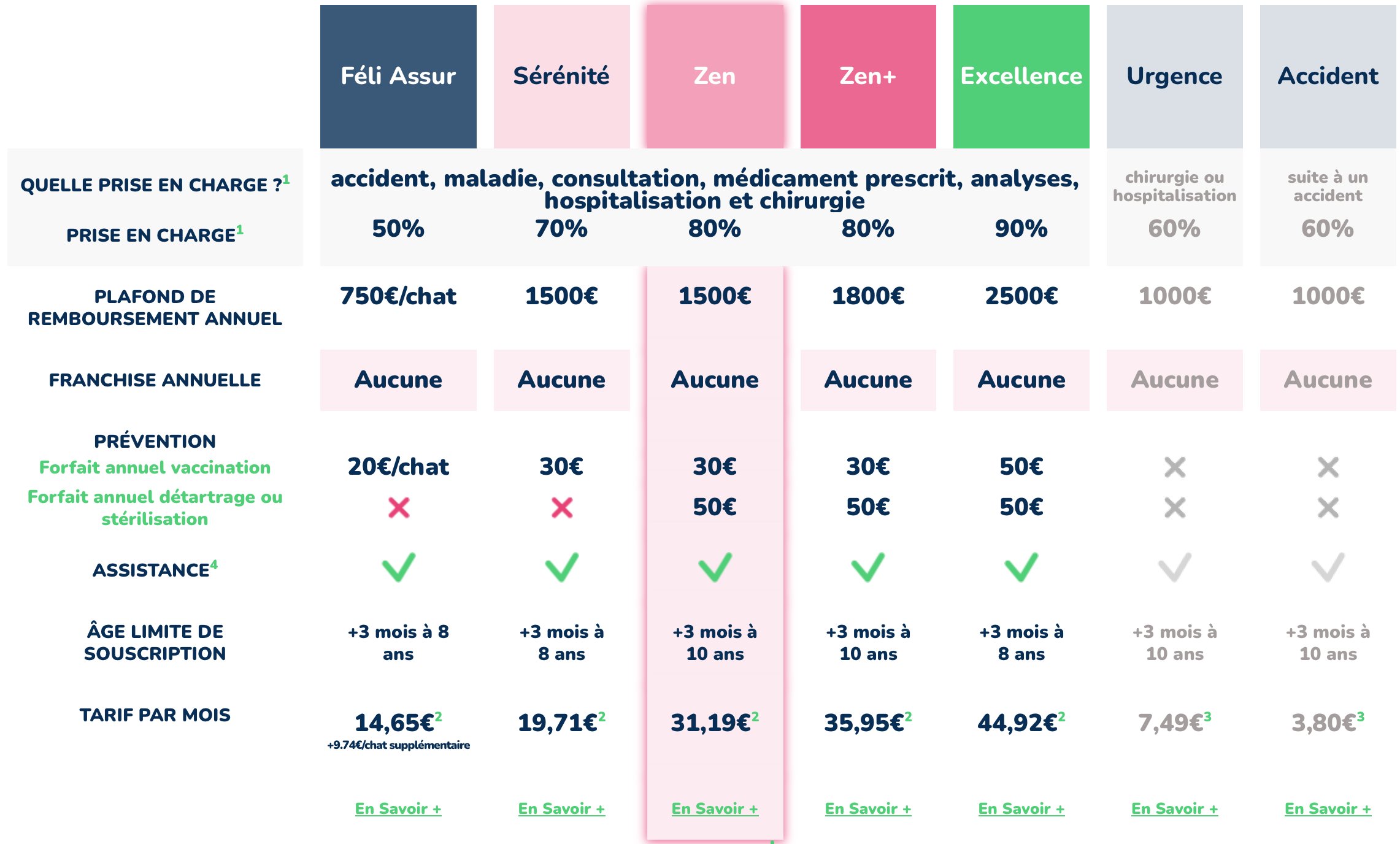 Bonne nouvelle ! Nos tarifs ne varient ni selon la race ni selon l’âge de votre chat, et ses garanties sont maintenues à vie. Une fois assuré, il le restera quoi qu’il arrive.